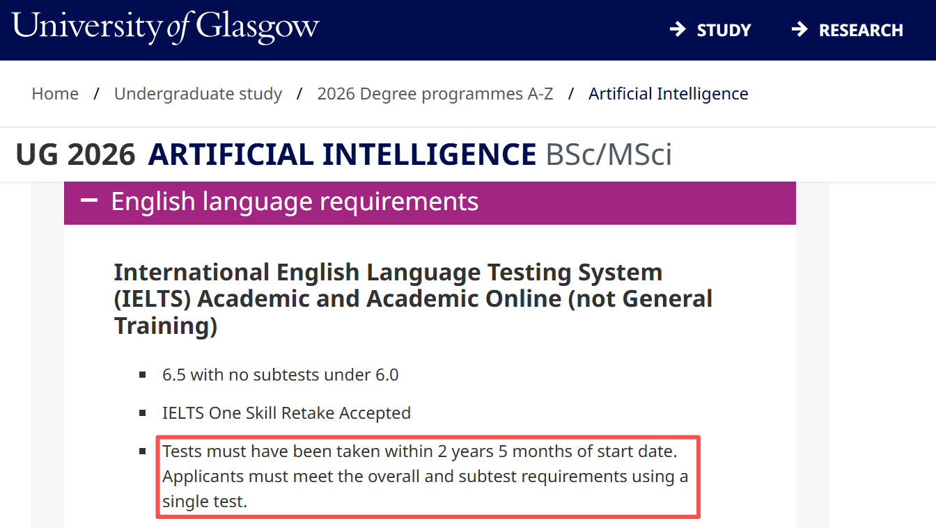 最近格拉斯哥大学突然宣布一则重磅利好信息:语言成绩有效期放宽至2年5个月,也就是说雅思、托福和PTE考试成绩过期5个月内都能申。根据官方规定,雅思、托福、PTE等考试的成...