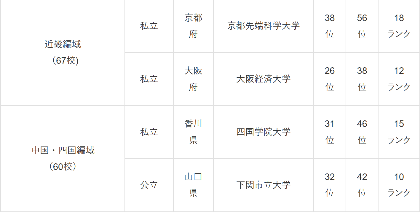 中国・四国編(60校中の順位)